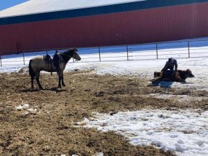 Bullseye has been my son’s horse for the past 4 years. Clayton has ridden Bullseye in our horse and ranch program, taking part in every aspect of the job. He gathers cows and sorts pairs in the pasture, moves herds and checks calves on him. I had the pleasure of watching my boy drag his first calf to the fire at age 10 on Bullseye, what a treat that was! We rope on him and when it comes to holding a cow Bullseye thinks he weighs 1400 lbs. This little horse is absolutely amazing and I have all the respect in the world for him. He has done a tremendous job taking care of our young cowboys and cowgirls and you need to watch his video. FMI call 612-810-5455